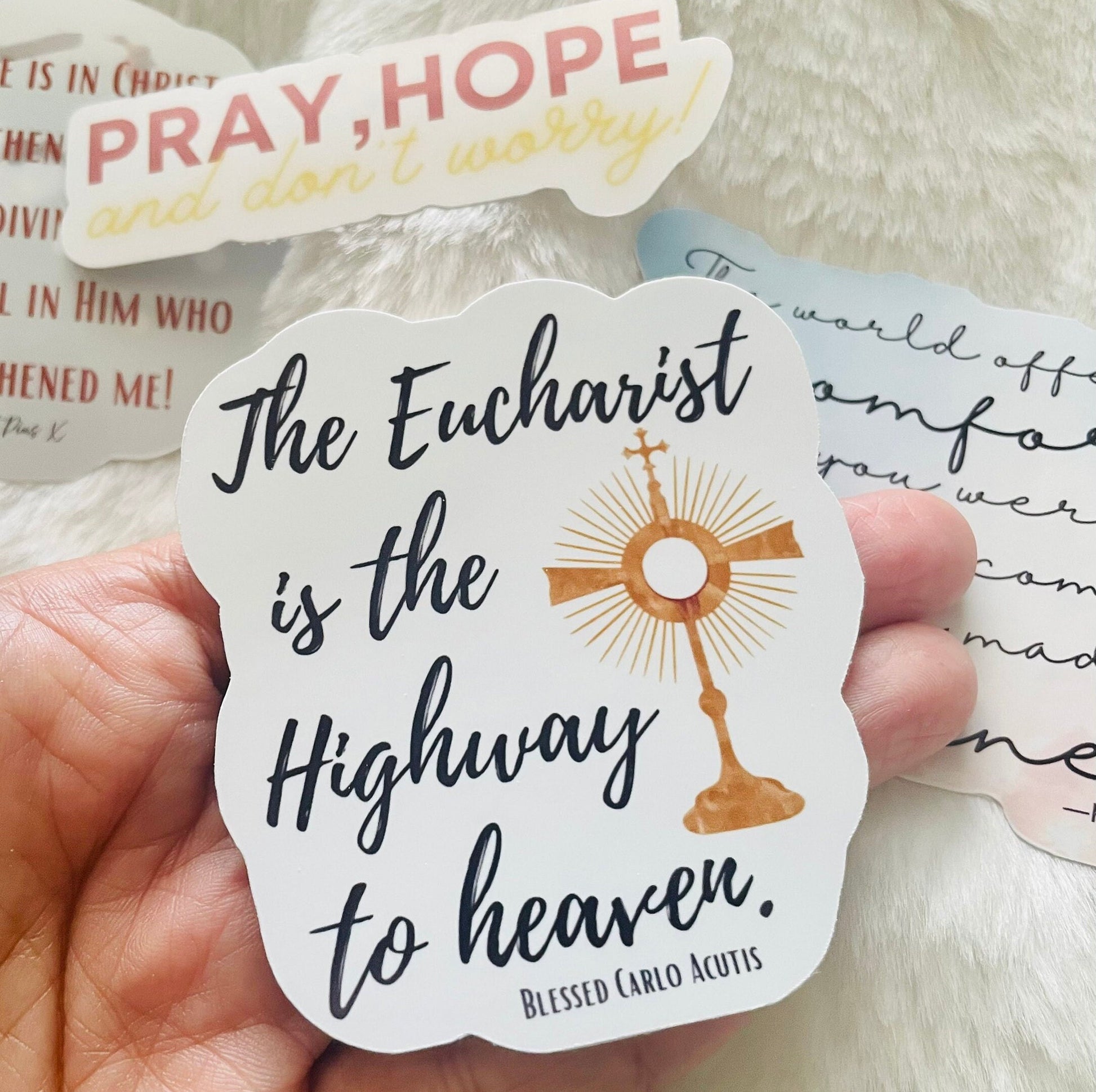 This is a set of 4 vinyl stickers featuring quotes from the Saints. They are great for cups/tumblers, journals, phone cases, laptops, etc. These stickers are water resistant and do not leave a residue when peeled off. Stickers are about 3 inches wide. Tired of woke stickers? Add this Catholic-themed set to your collection! Need a custom or bulk order? Please feel free to send us an inquiry.