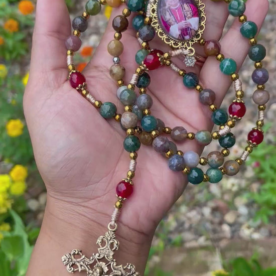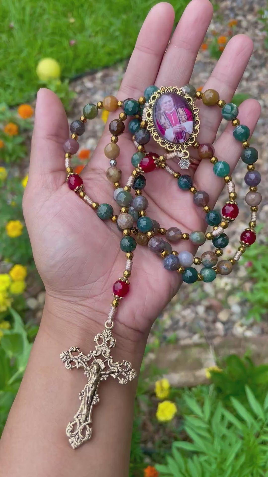 -Multi-color agate beads to represent the colors of the liturgical seasons.