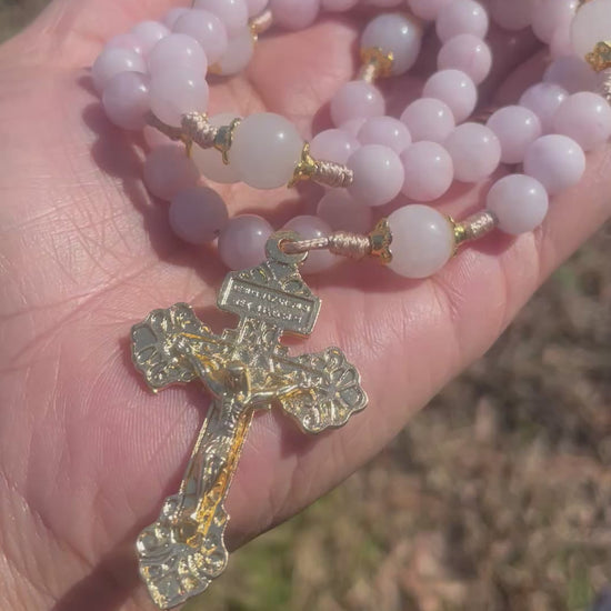 Roses for Mary - Handmade pink quartz and Miraculous Medal Rosary